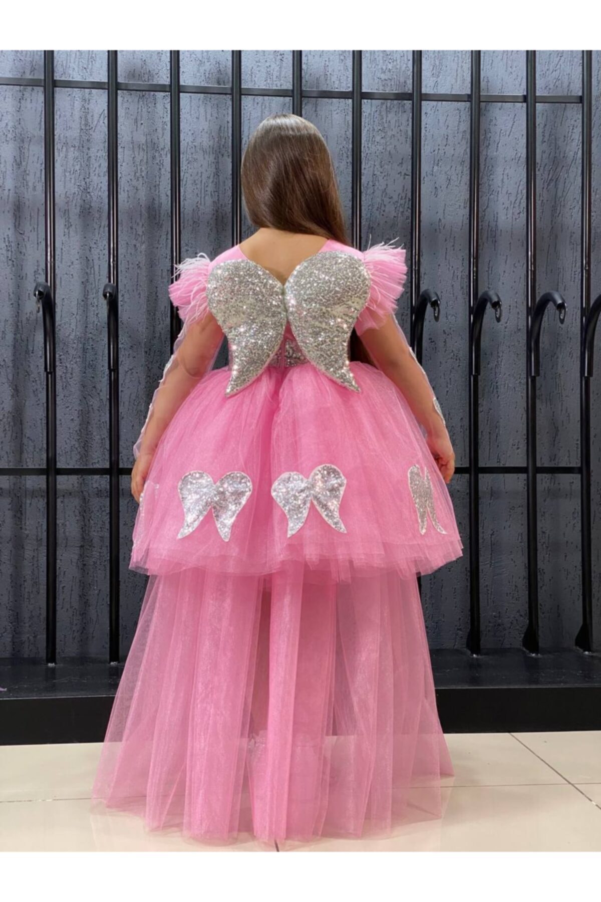 Kız Çocuk Krem Çıkarabilir Kuyruklu Sürünen Elbise Doğum Günü Kabarık Abiye + Toka + Çanta