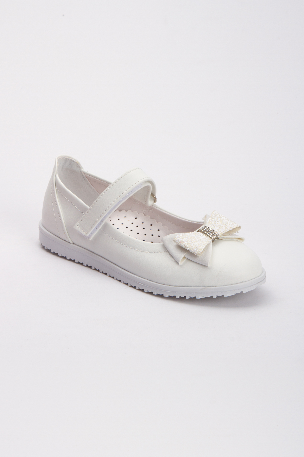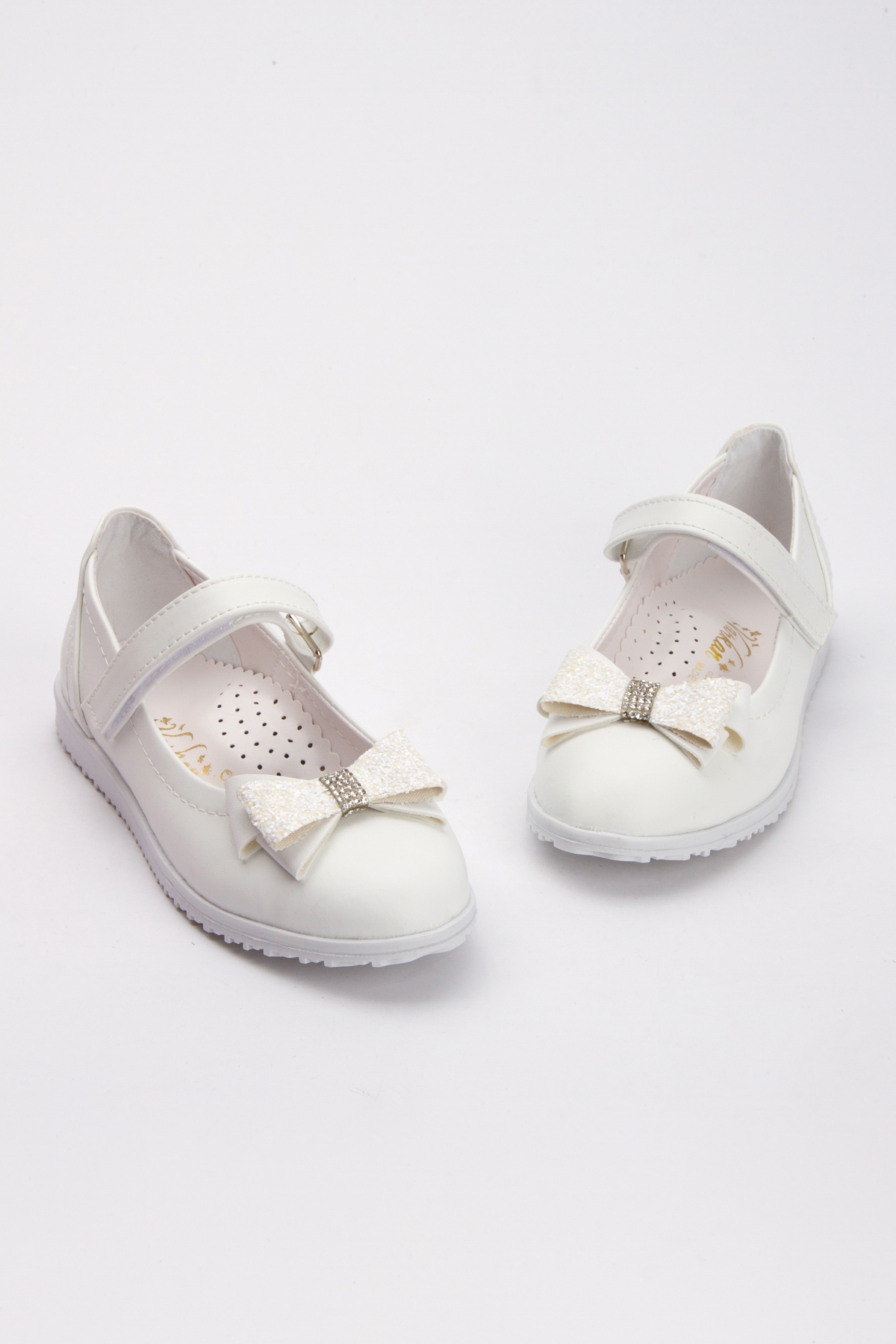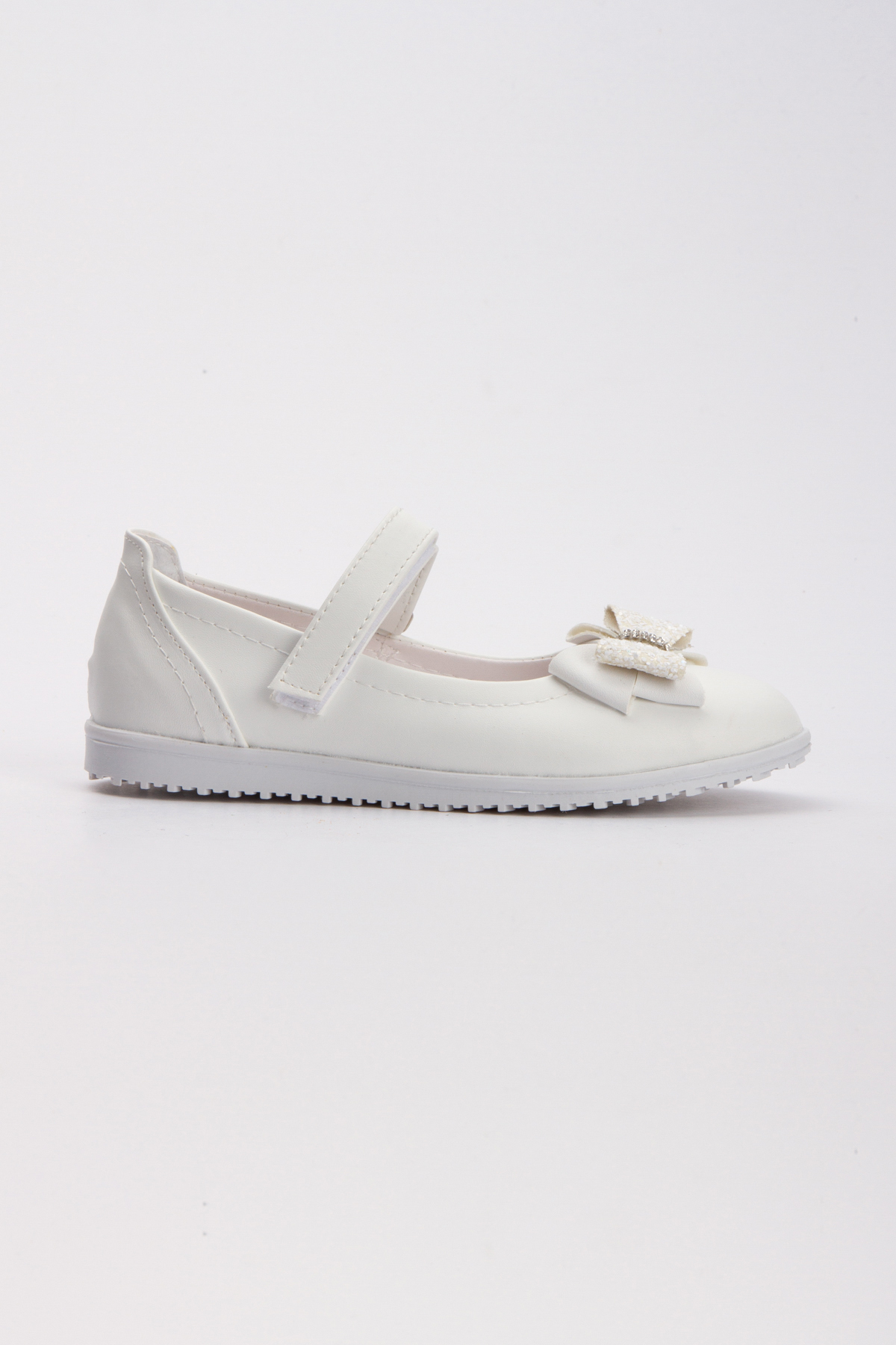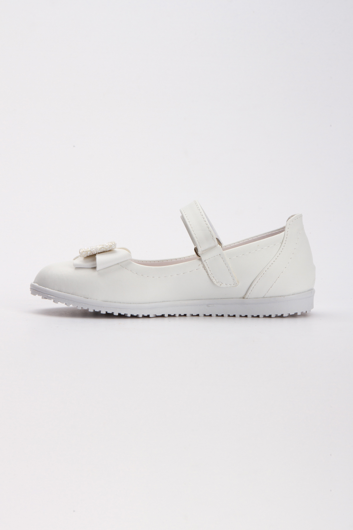 Kız Çocuk Ortopedik Beyaz Kaymaz Taban Yumuşak Suni Deri Babet Ayakkabı
