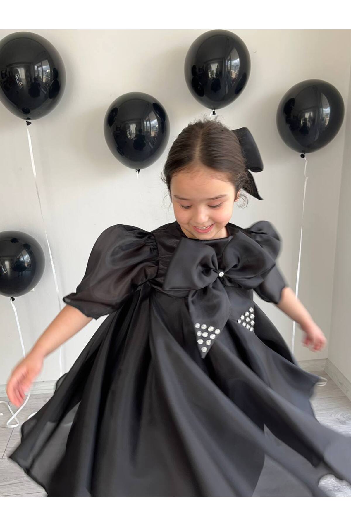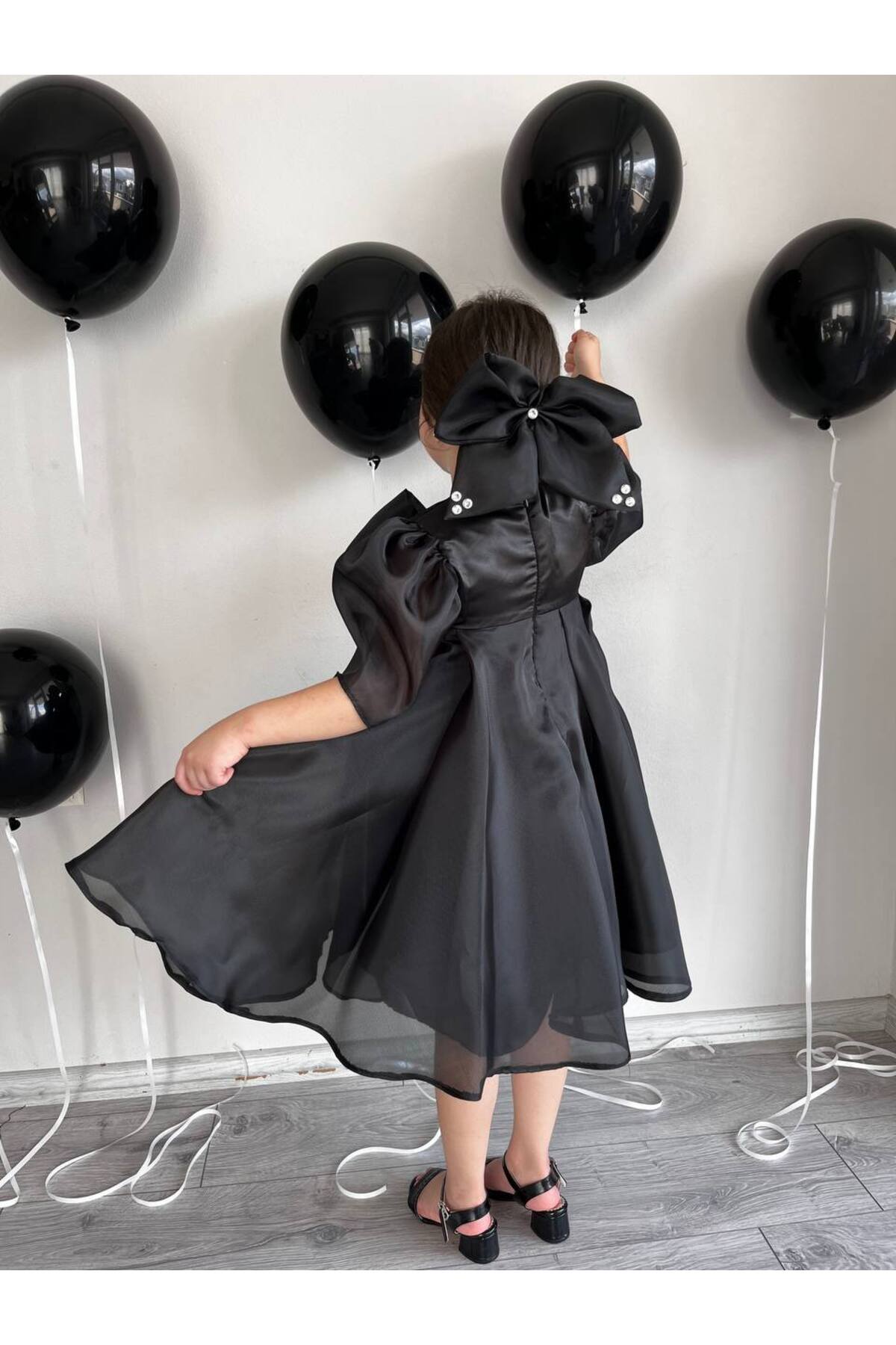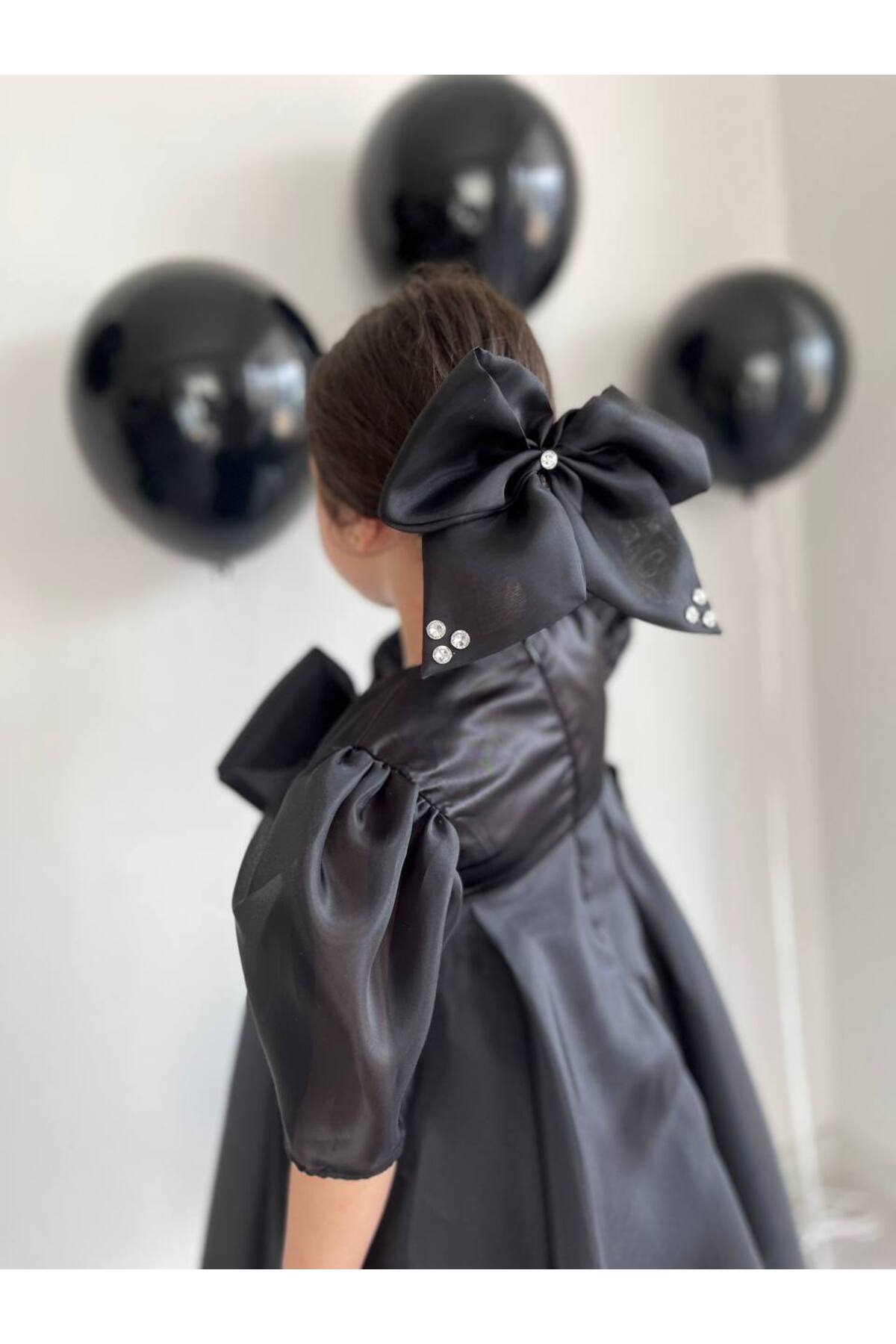 Siyah Tam Kloş Uçuş Uçuş Karolin Abiye Kız Çocuk Elbise
