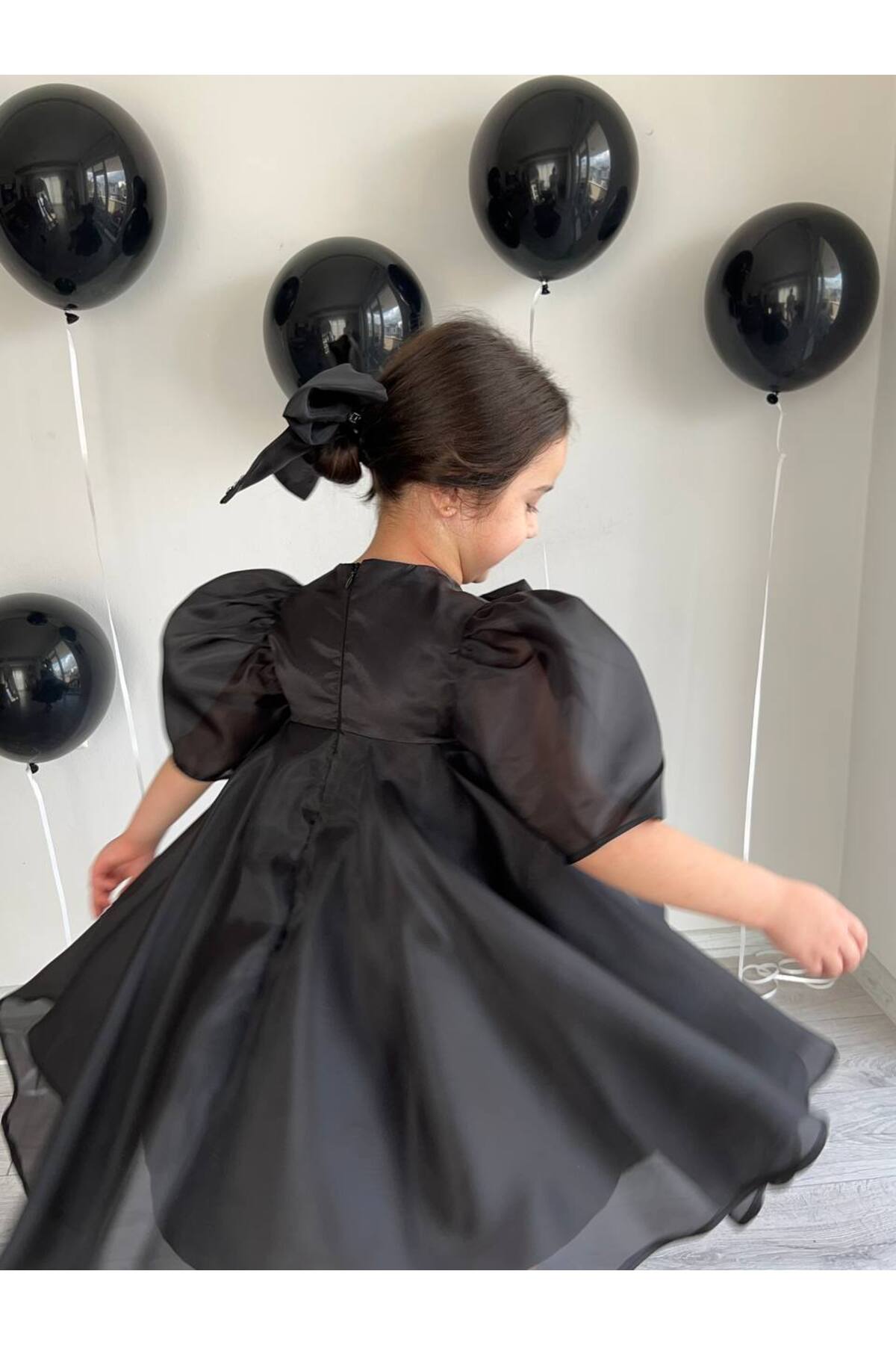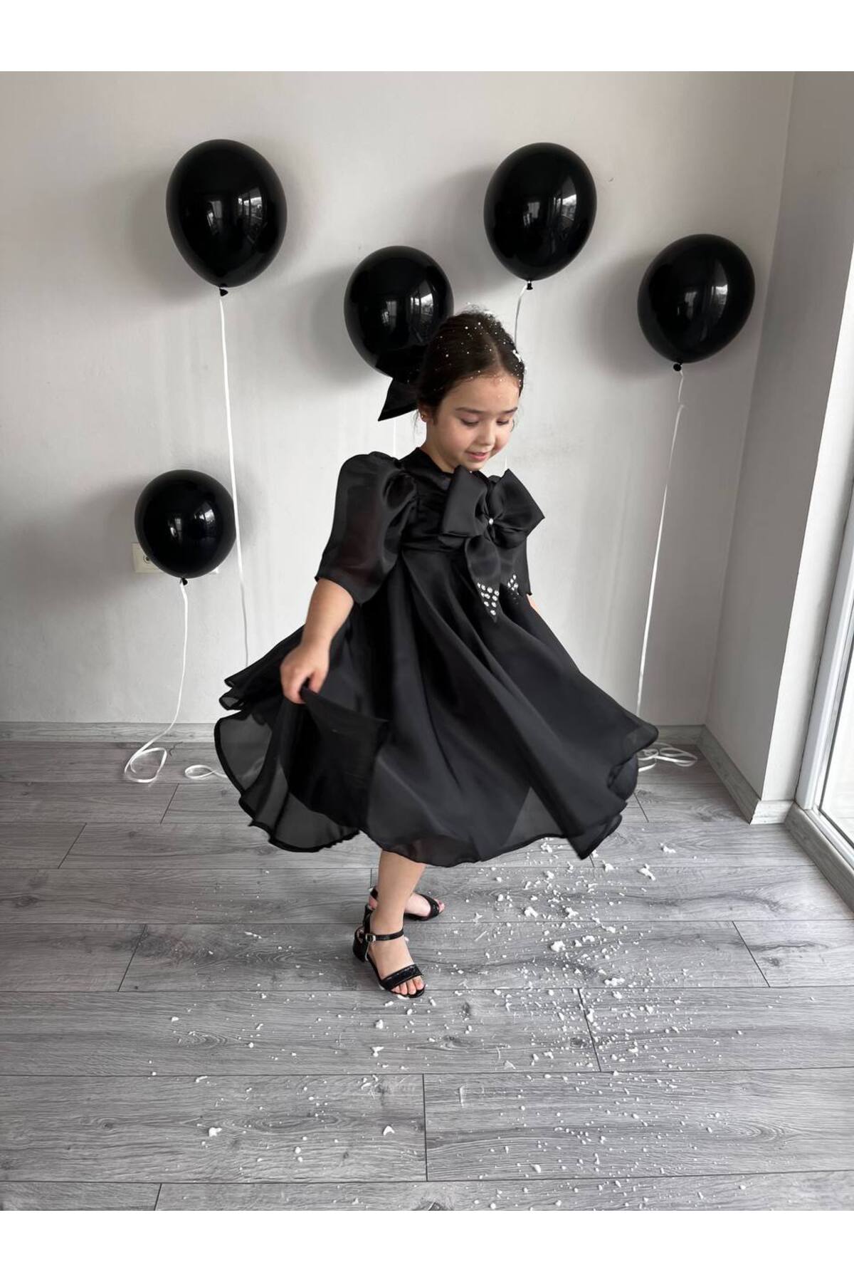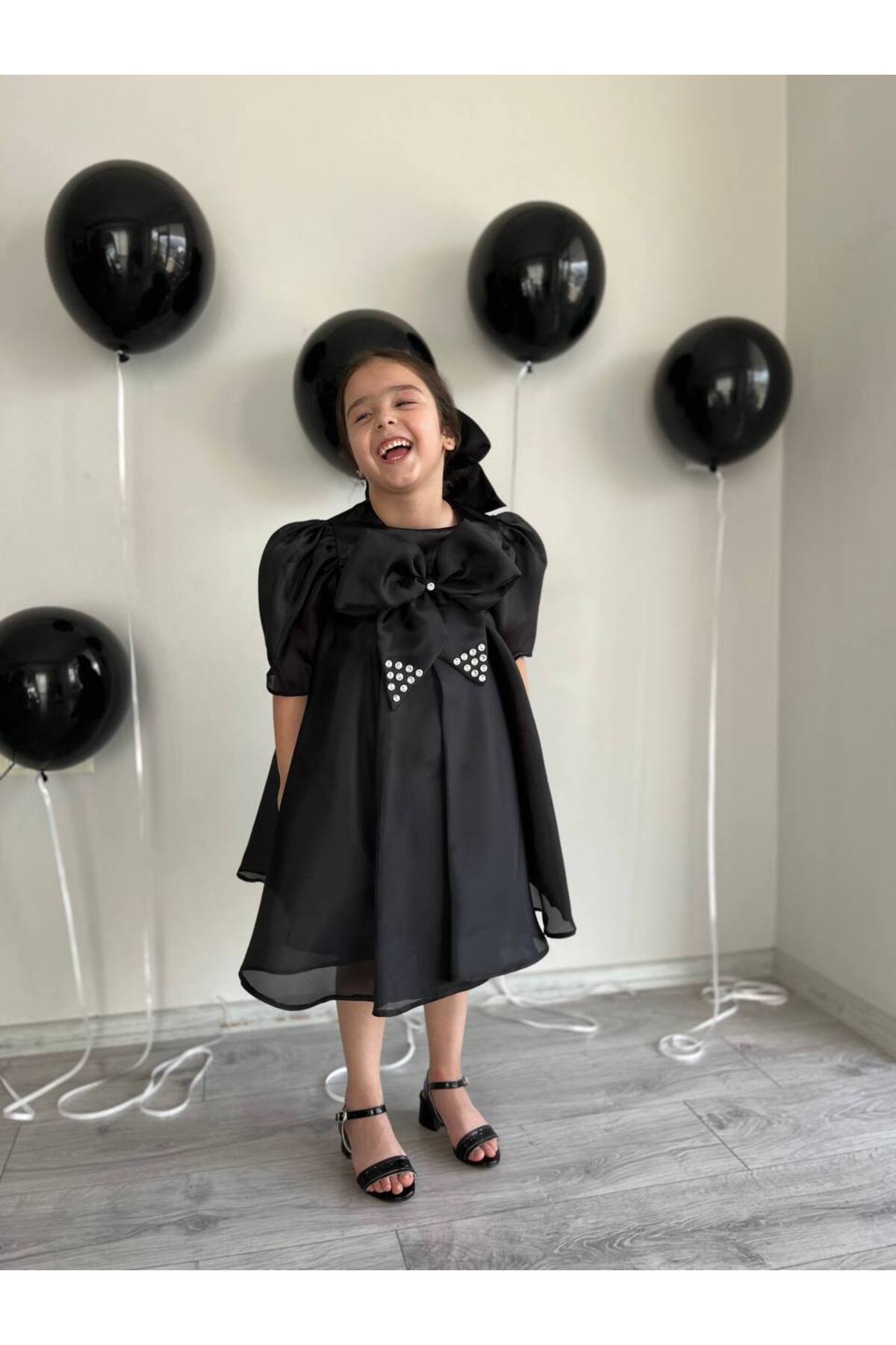 Siyah Tam Kloş Uçuş Uçuş Karolin Abiye Kız Çocuk Elbise